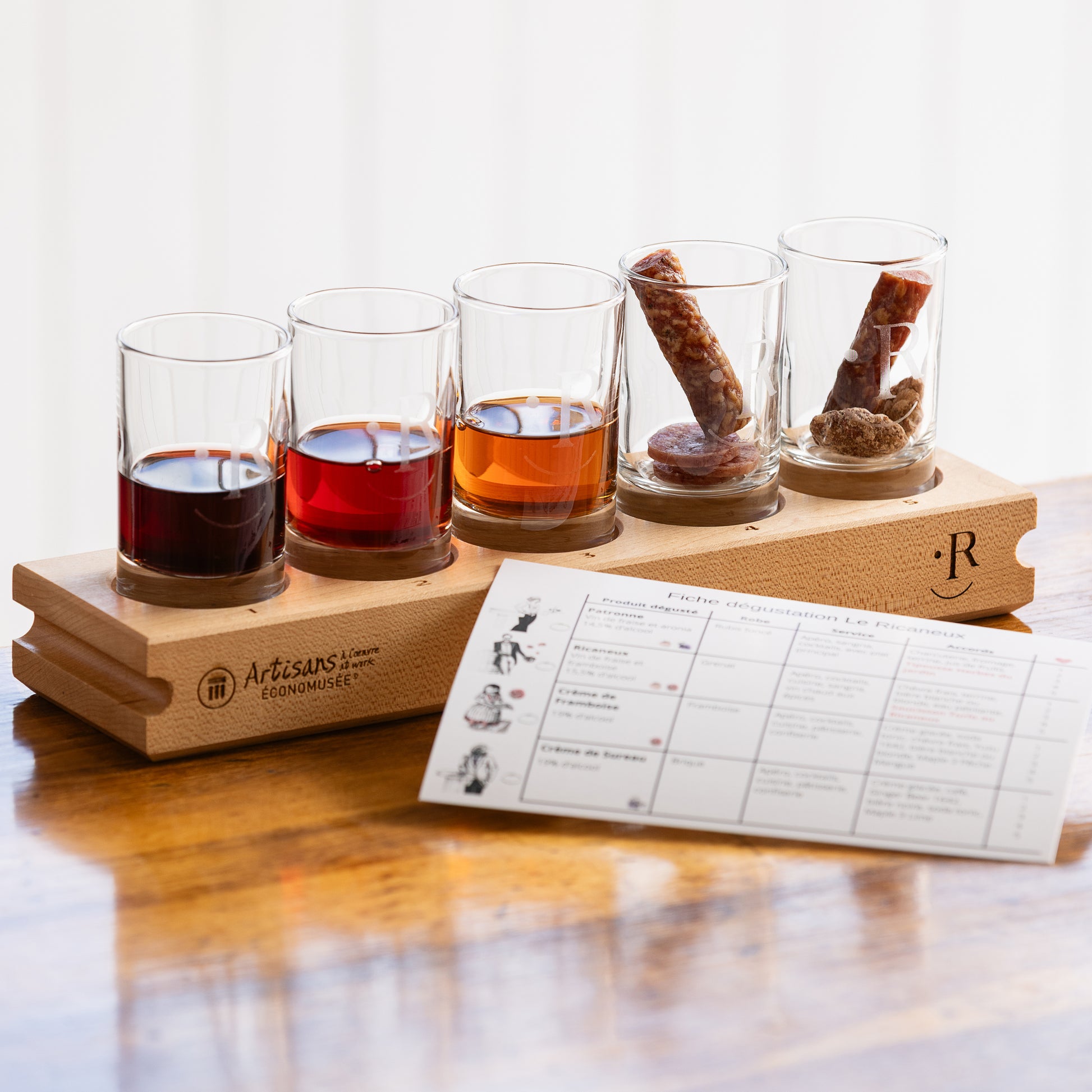 Au programme : Patronne, Ricaneux, Négociant accompagnés de saucisson Tipousse aux herbes du Jardin, Tipousse au poivre blanc de Fou du Cochon, saucisson Ricaneux des Élevages Turlo et Pacanes sablées à l'érable du Bistreau d'érable.